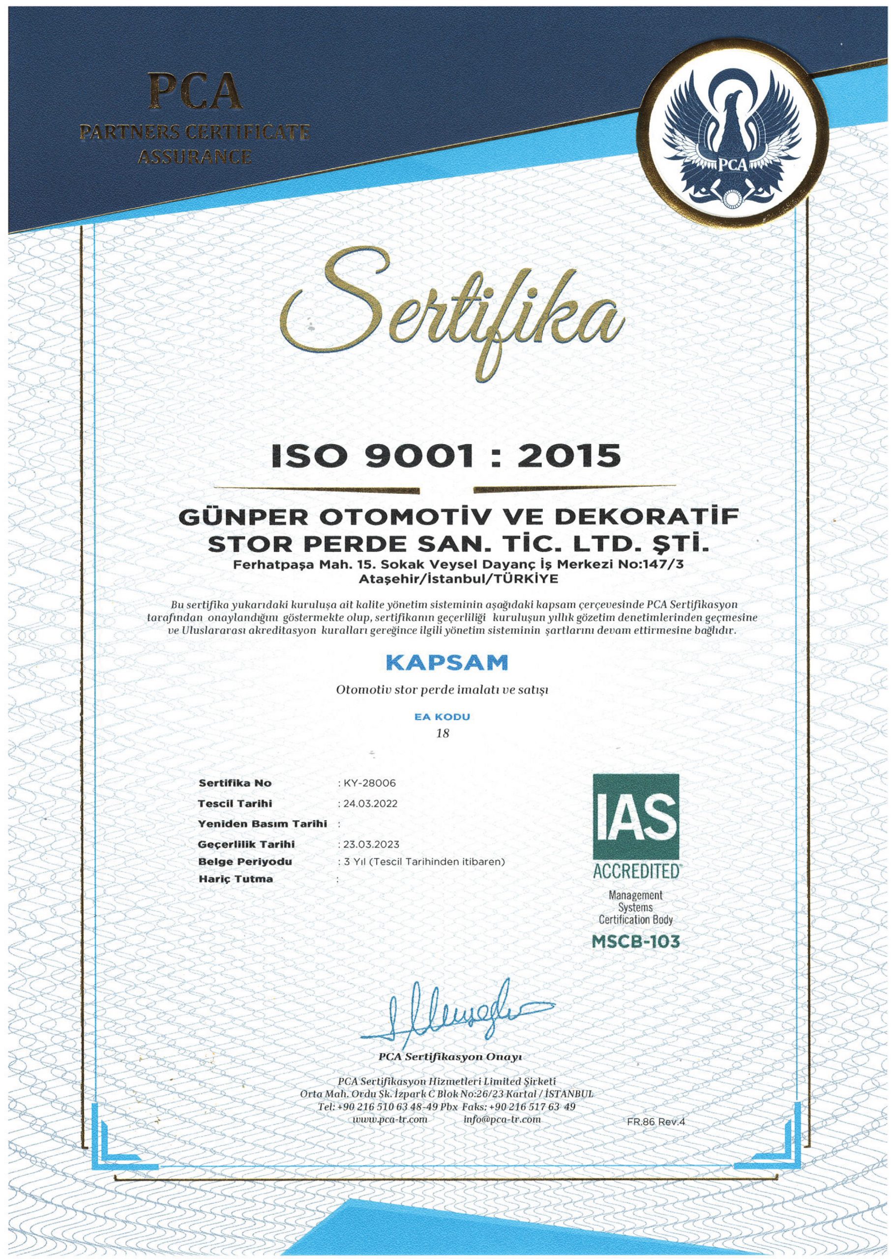 Sertifikalarımız